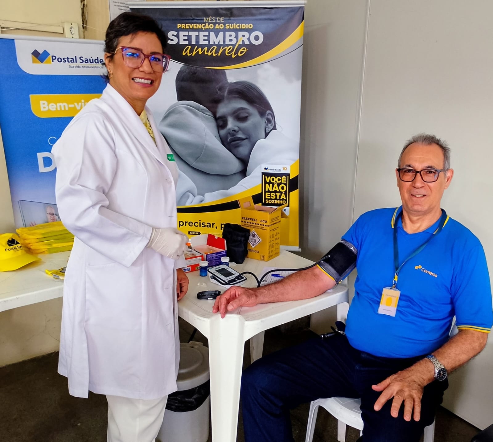 Na mesma data, na sede da operadora em Brasília/DF, aconteceu o Dia “D” do Setembro Amarelo, uma ação promovida pela Gerência de Gestão de Pessoas (GEPES) e a Gerência de Atenção e Cuidado à Saúde (GEASA), dedicada à promoção da saúde mental e do bem-estar de todos os colaboradores. Em parceria com a Saúde Clara, foram ofertados atendimentos de auriculoterapia, ioga, aferição da pressão arterial, glicêmica e massagem relaxante. Ação também foi estendida para os CDDs de Samambaia, Recanto das Emas, na Sede dos Correios em Brasília, e na clínica Postal Saúde em Taguatinga.