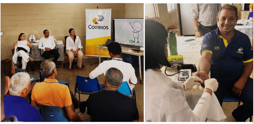 Nos dias 26 e 28, o Núcleo de Atendimento Regional do Maranhão, em parceria com os Correios, promoveu uma roda de conversa para falar sobre a “A influência da alimentação na saúde mental”, o diálogo foi facilitado pela nutricionista Maria Solange Soares e pelos psicólogos Bruno Marques e Ester Nayara. Na ocasião, os empregados receberam atendimento rápido para aferição da pressão arterial e glicêmica.