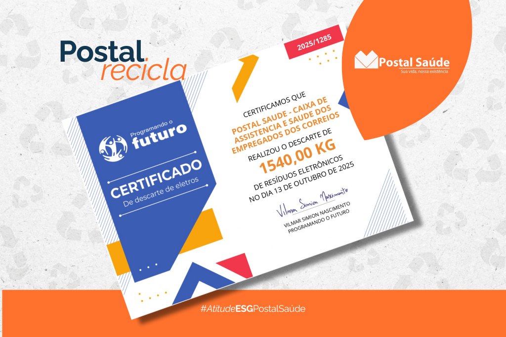 A Postal Saúde recebeu o “Certificado de Descarte de Eletros” da ONG Programando o Futuro em […]