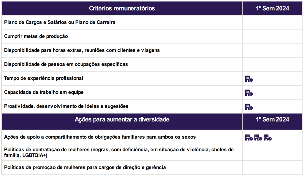 Para cada grupo de ocupação que não apresenta cálculo da diferença, para salário de contratação ou para remuneração média, pode ter ocorrido um dos seis motivos: (1) por ter menos de três mulheres; (2) por ter menos de três homens; (3) por não ter mulheres; (4) por não ter homens; (5) por não ter três homens nem três mulheres naquele grupo ocupacional; (6) por não ter nem homens nem mulheres naquele grupo ocupacional.