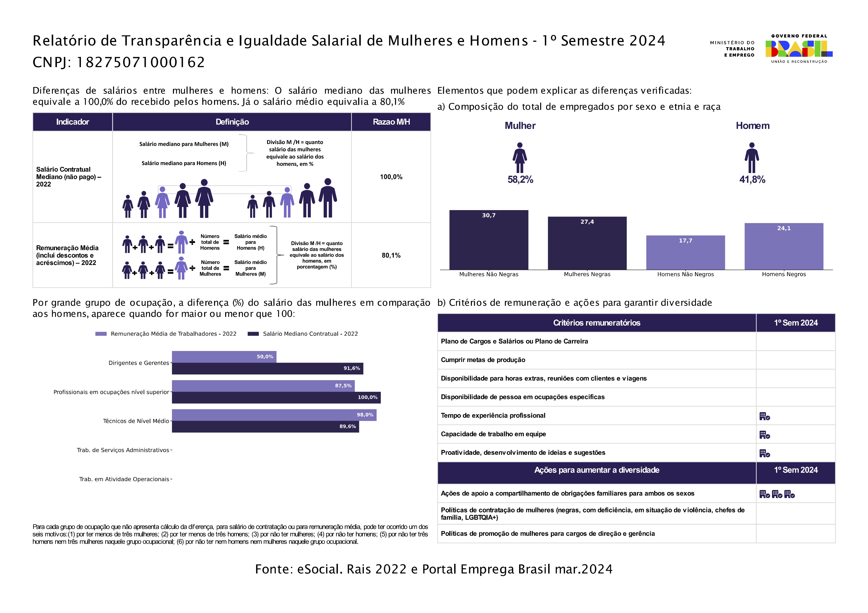 Relatório de Transparência e Igualdade Salarial de Mulheres e Homens - 1º Semestre 2024