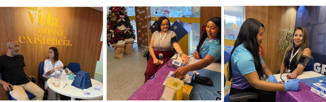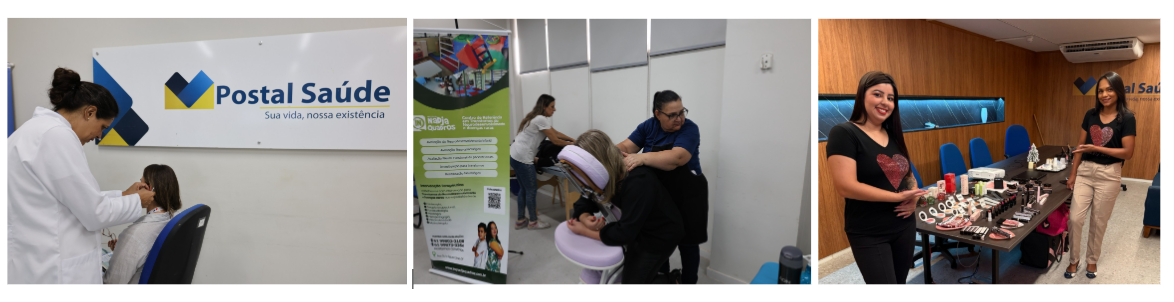 Ao longo da semana, os colaboradores contaram com uma programação especial, que incluiu desde momentos de relaxamento até ações de monitoramento da saúde. No térreo e no auditório foram montados estandes de massagem, auriculoterapia, aferição de pressão arterial, glicemia e avaliação ocular, além de atendimento de bioimpedância e exposição de produtos cosméticos.